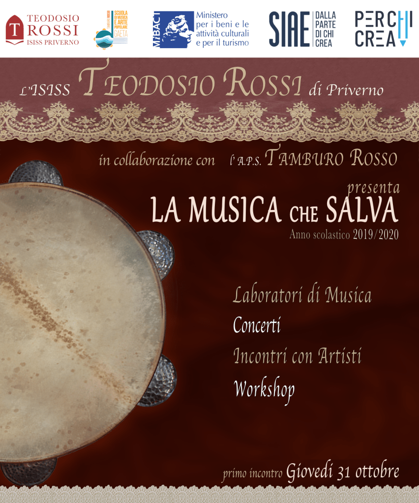 “Il progetto si propone di sensibilizzare i giovani studenti attraverso un dibattito attivo e partecipativo sul tema delicato della legalità nei suoi molteplici aspetti attraverso il linguaggio della musica popolare che rappresenterà il terreno fertile da cui estrarre le risorse necessarie affinché si possa esprimere il concetto di “salvezza” dei valori umani attingendo linfa dalle nostre radici per seminare nuovi concetti di bellezza e gentilezza necessari per una società civile e giusta. Partendo dallo studio dei canti tradizionali e dal valore terapeutico della musica sugli individui, gli studenti apprenderanno le tecniche del tamburello al fine di creare un repertorio musicale tradizionale (soprattutto del territorio) e originale in cui voci e tamburi interagiranno con chitarre, organetti per dare vita a una piccola orchestra popolare arricchita anche di giovani musicisti del territorio condividendo l’esperienza di esibirsi in pubblico ed essere esempio di solidarietà e giustizia.”
